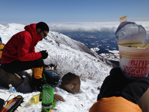blog ブログ 雪山登山Posted on 2014-02-122019-12-09 昨日はお休みを頂き、九重登山をしてきました。2年ぶりの雪山登山でしたが、今回の雪の量、雪の質、天候には本当に恵まれ、稜線の強風を除けば、登山道には風もなく気温-8℃を感じさせない程の快晴でした。 雪山になれず体力はどんどんと消耗しましたが、感動の連続ですごいすごいのを連呼し、幻想的な風景は体のキツサを忘れさせてくれました。 今回のここまで天候が良い状態で雪山に登れるのはそうない事だったそうで、雲の上の散歩、雲の上のカップラーメンは格別でした!